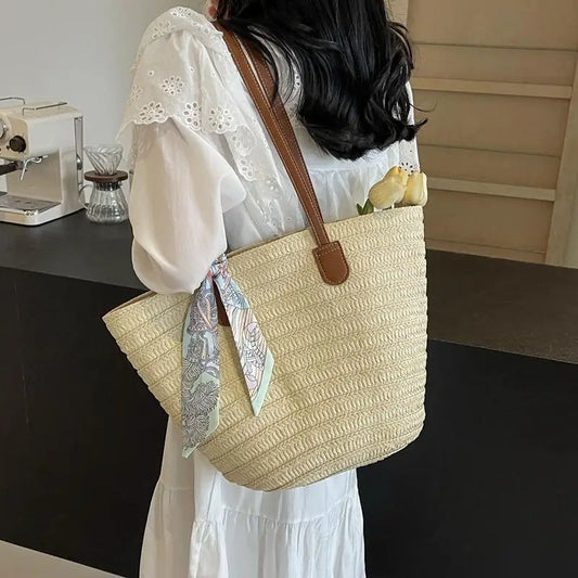 Elegant Straw Woven Tote Bag - Versatile & Spacious