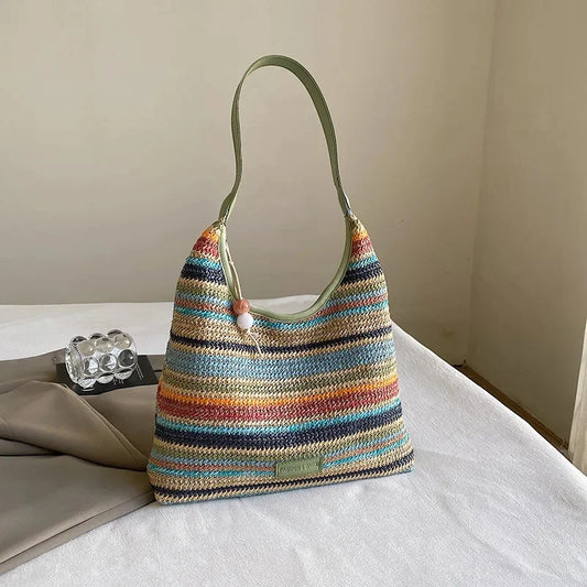 Elegant Woven Stripe Women's Shoulder Bag
