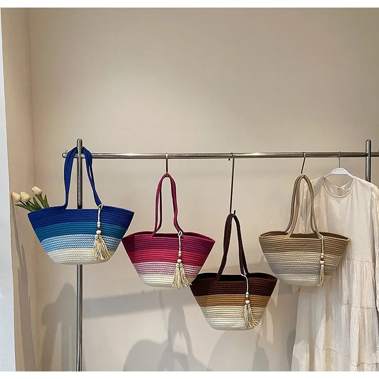 Discover the epitome of style and functionality with our Elegant Woven Stripe Women's Shoulder Bag. This accessory is designed to elevate your ensemble while offering practical benefits for your everyday adventures.